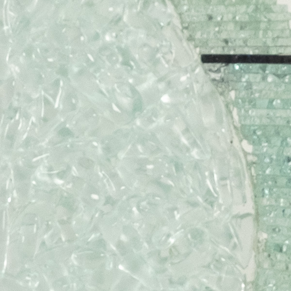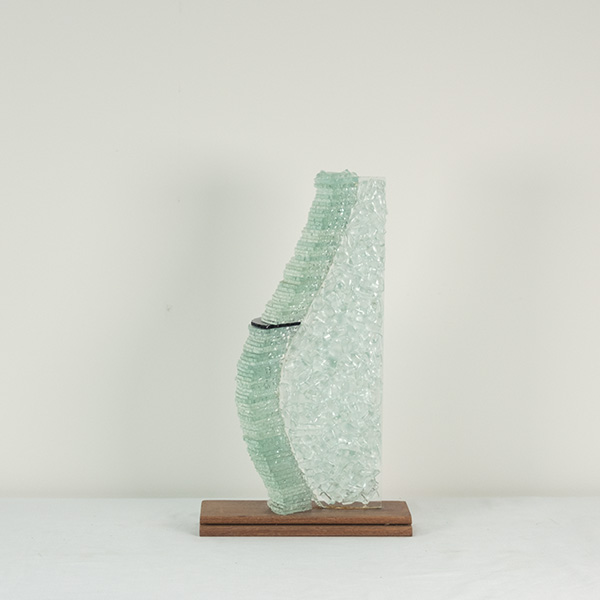 Glassculptuur op houten sokkel