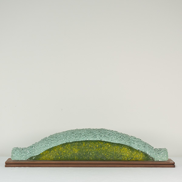 glassculptuur op houten sokkel