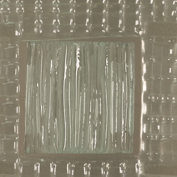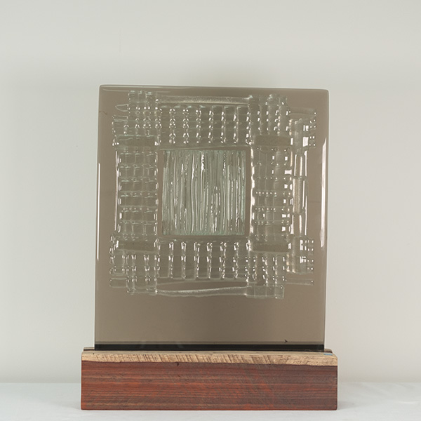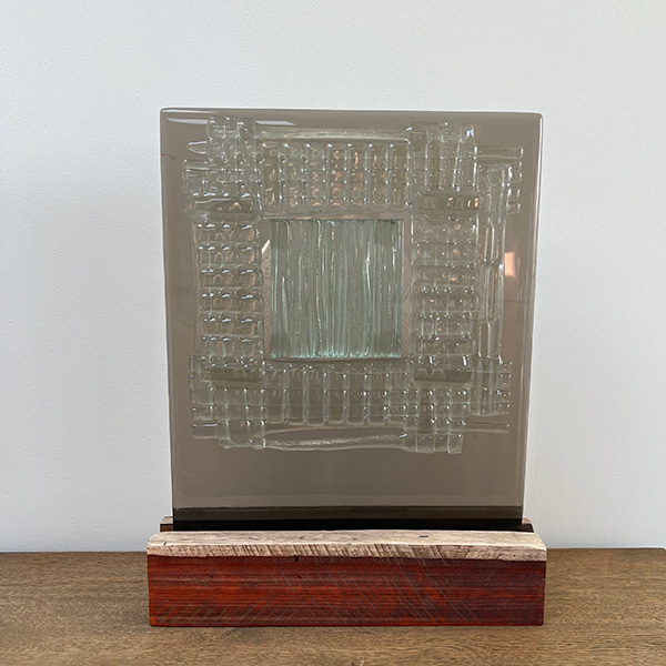 glassculptuur op houten sokkel